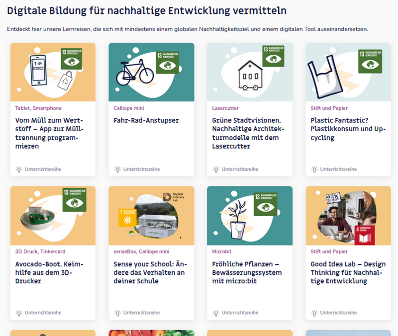 Auf unserer Plattform TüftelAkademie findet ihr gleich eine ganze Kollektion zum Thema Digitale Bildung für nachhaltige Entwicklung. Fahr-Rad-Anstupser, Grüne Stadtvisionen, Bienen(t)räume und viel mehr – hier findet ihr bestimmt ein spannendes Projekt für Zuhause oder Lerninhalte für euren Unterricht.