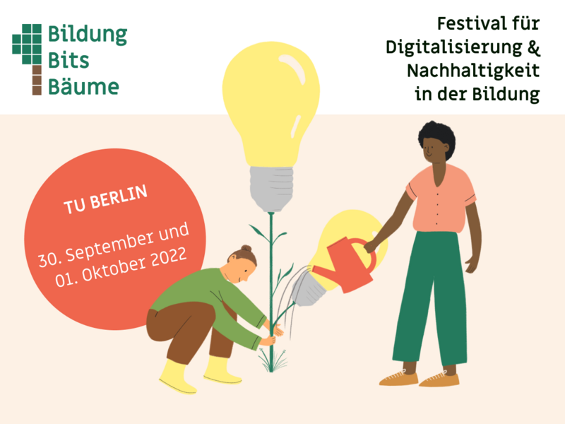 Das Bildung, Bits und Bäume Festival für Digitalisierung und Nachhaltigkeit in der Bildung findet am 30.9. und 1.10.2022 in der TU Berlin statt. Alle Infos und Tickets findet ihr hier.