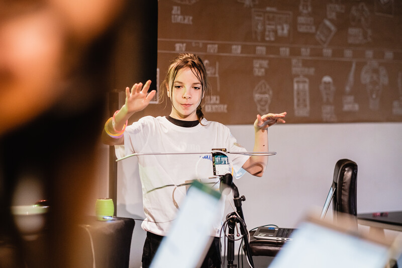 Gleich für die erste Übung des Error Music Workshops braucht es Überwindung. Mit verbundenen Augen geht es durch einen Geräuschparcours. Zehn mutige Mädchen zwischen 12 und 16 Jahren verlassen die sehende Welt und konzentrieren sich ganz auf ihr Gehör - plötzlich nehmen sie Geräusche ganz anders wahr. So starten sie in den viertägigen Workshop, der sie auf eine Reise durch die Welt elektronische Musik mitnimmt. Angeleitet von der Künstlerin Josa Peit lernen die Mädchen Pionierinnen des Programmierens kennen, basteln ein eigenes Theremin, ein Musikinstrument das berührungslos gespielt wird und programmieren ein elektronisches Orchester.