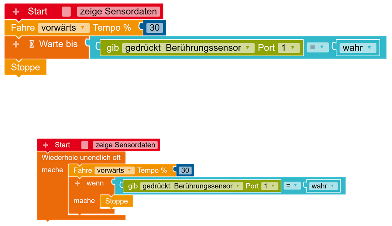 Um die Roboter zu steuern verwenden wir die Codingsprache NEPO von Open Roberta, eine sehr visuelle Programmiersprache, die auch über den Browser ohne Login genutzt werden kann. Über sogenannte Token, spezifische Codes, die mit bestimmten Robotern verknüpft sind, können Teilnehmer*innen dann einzelne EV3s durch die Gegend fahren lassen.