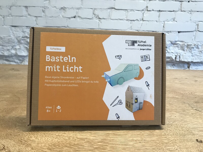Elektronik und Papier miteinander verbinden? Wie das funktioniert, zeigt die TüftelBox "Basteln mit Licht"! Ausgerüstet mit LEDs, Kupferklebeband und Knopfbatterien könnt ihr nicht nur Kinderaugen zum Strahlen bringen, sondern auch eure Papierkreationen. Eine kreative Experimentieridee, durch die Tüftlerinnen auch noch ein Grundverständnis von Stromkreisen erfahren. Basteltipp: Häuser, Autos und Eigenkreationen könnt ihr natürlich auch super anmalen!